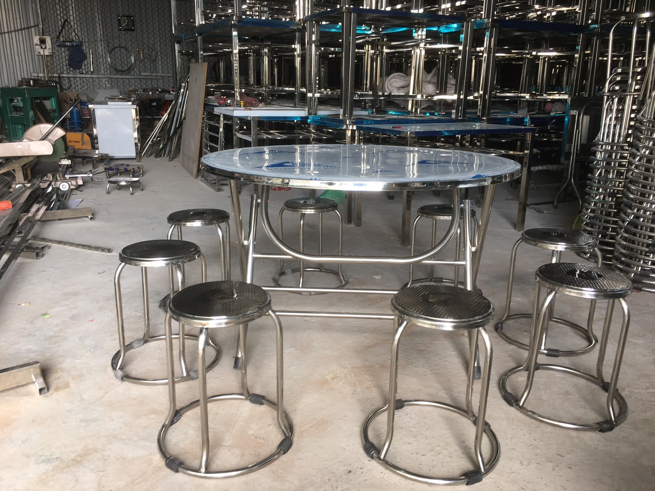 + Bàn Ghế Inox được thiết kế cho gia đình, quán ăn nhà hàng, sự kiện đám cưới... Bàn ghế được thiết kế gấp gọn khi không sử, dễ dàng vận chuyển.