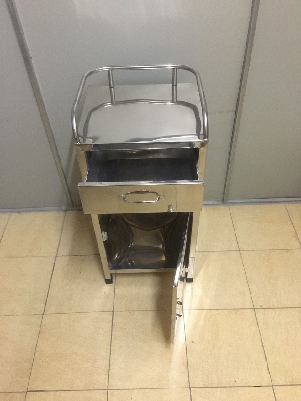 - Ngăn kéo trên có khóa dùng để đựng giấy tờ,thuốc,và những vật dụng nhỏ lẻ của bệnh nhân.